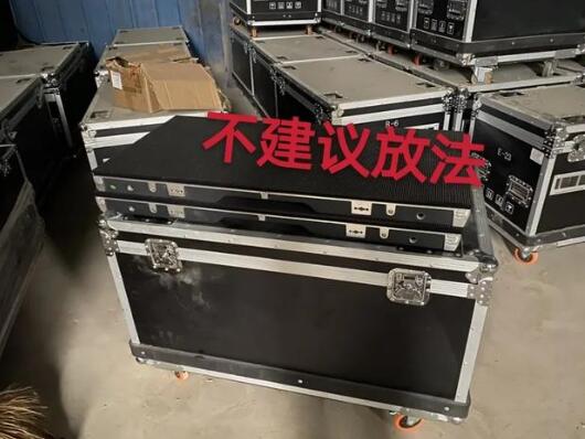 正確做法:豎放且燈面朝外(如下圖),如實需堆放,則箱體面對面背靠背擺放