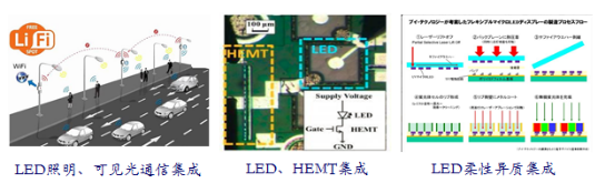 LED光電/光系統(tǒng)集成對(duì)本身LED器件的結(jié)構(gòu)性能等提出要求。LED光電/光系統(tǒng)集成包括照明、顯示和光通信的功能集成,如顯通、照通、顯照甚至顯照通,高效高顯色性、高分辨率高對(duì)比度和高速寬帶寬的性能集成,大功率、高密度和高頻驅(qū)動(dòng)的結(jié)構(gòu)集成;GaN 材料和Si等材料的異質(zhì)材料集成,GaN LED和Si CMOS、GaN HEMT等功能單芯片集成,三維/曲面/柔性異質(zhì)復(fù)雜結(jié)構(gòu)形態(tài)集成,GaN LED和探測(cè)器、光波導(dǎo)等片上光通信集成。