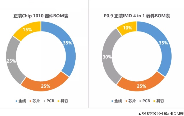 從之前chip1010和miniled 0.9的成本看,焊線成本無差異;芯片成本初級階段略有差別,但目前可做到基本一致,而主要的成本差異在PCB材料上。