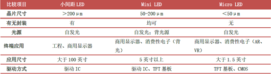 以上三種顯示技術均基于微小的LED晶體顆粒作為像素發(fā)光點,區(qū)別在于相鄰燈珠點間距和芯片尺寸不同。Mini LED和Micro LED在小間距LED的基礎上進一步縮小了燈珠間距和芯片尺寸,是未來顯示技術的主流趨勢和發(fā)展方向。