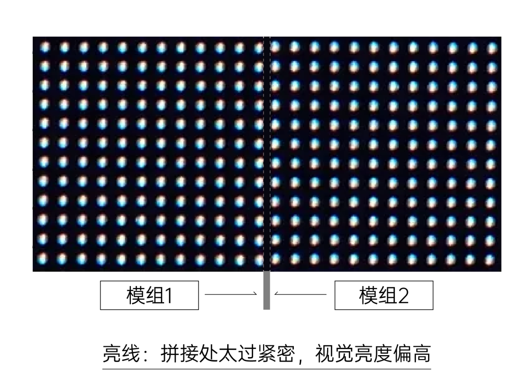 在屏體安裝時(shí),模組之間或箱體之間形成的縫隙或擠壓,會(huì)形成視覺上的亮暗線,隨著間距變小,此現(xiàn)象愈發(fā)明顯,對(duì)LED大屏的顯示效果造成了一定的影響,顯著降低了人們的視覺體驗(yàn)。