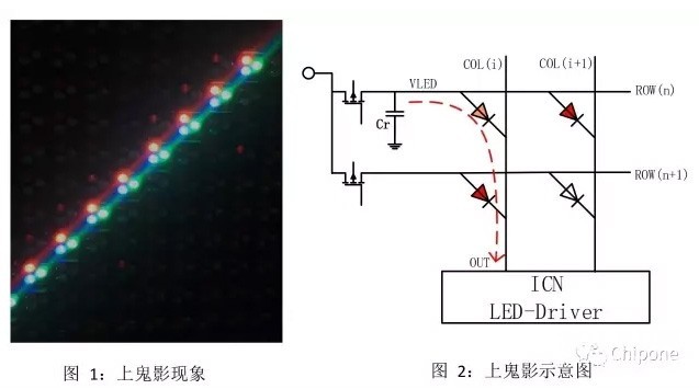 當(dāng)出現(xiàn)燈珠開路,通道OUT1電壓被拉低到0.5V以下甚至0V,并通過寄生電容C1、C2影響到列寄生電容Cr,當(dāng)Cr電位被拉低時(shí),與開路燈珠同一行的LED出現(xiàn)隱亮。DaRLED顯示屏廠家|江蘇迷你光電有限公司