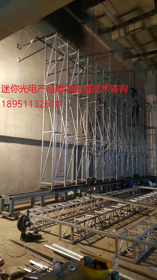 2、然后在軌道基礎(chǔ)上安裝屏體鋼結(jié)構(gòu),以屏體中間對(duì)開,分辨安裝2個(gè)鋼結(jié)構(gòu),如果只搭建一個(gè)鋼結(jié)構(gòu),那么另外一個(gè)屏體就不能形成統(tǒng)一性連貫,