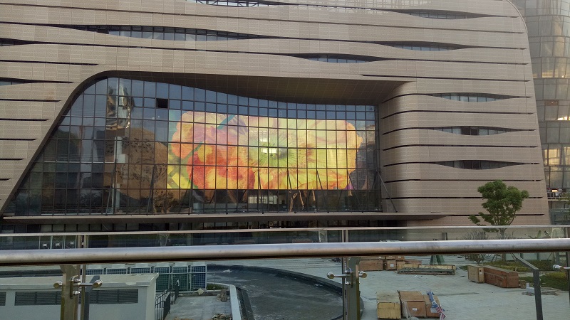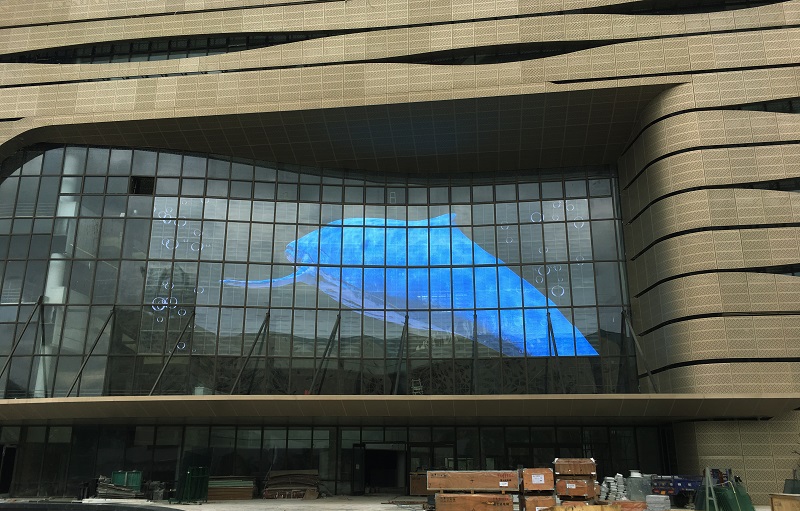 據(jù)了解,本次項(xiàng)目運(yùn)用迷你P16系列透明屏,迷你透明屏融合了輕、薄、透的結(jié)構(gòu)設(shè)計(jì)理念,顛覆了傳統(tǒng)顯示屏復(fù)雜的鋼架結(jié)構(gòu)。它能夠針對(duì)不同的環(huán)境使用要求,不破壞建筑原結(jié)構(gòu),呈現(xiàn)出不同的形狀,與劇院現(xiàn)場(chǎng)的玻璃幕墻完美融合,無(wú)縫拼接,且屏體背部無(wú)任何結(jié)構(gòu),玻璃幕墻無(wú)需承重,安全系數(shù)極高。其通透的特性,不影響日常采光,隱形顯示,全方面觀看無(wú)死角,亮度可調(diào)節(jié),流光溢彩的顯示畫(huà)面結(jié)合音樂(lè)營(yíng)造了一種氣勢(shì)恢宏,具有現(xiàn)代科技感的震撼場(chǎng)面,賦予劇院建筑玻璃的靈動(dòng)生氣,為劇院增添了一道亮麗的風(fēng)景線。