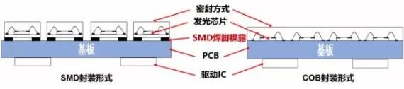 四、散熱性能對(duì)比散熱性能的優(yōu)劣直接影響LED產(chǎn)品的壽命,未來(lái)銷售產(chǎn)品不談技術(shù)出處就說(shuō)你的產(chǎn)品壽命長(zhǎng)那是耍流氓。COB顯示面板LED芯片的正負(fù)極是直接和PCB板上電路連接,導(dǎo)熱路徑最短,沒(méi)有任何的中間介質(zhì),熱阻值最小,是一個(gè)最完美的散熱優(yōu)化技術(shù)。傳統(tǒng)LED顯示面板LED芯片的正負(fù)極通過(guò)支架內(nèi)部的電路先與支架引腳相連接,然后再焊接到PCB的電路上,是一種間接的散熱方式,熱傳導(dǎo)路徑長(zhǎng),中間介質(zhì)不可缺少,熱阻值高。相比較它的確不是一個(gè)好的散熱技術(shù)。這樣一種散熱有缺陷的技術(shù),本已不堪重負(fù),卻還有人把它的表面封上一層膠,熱量和應(yīng)力內(nèi)蝕,冠名GOB面板或其它什么技術(shù)的面板,所以不鼓包才怪。
