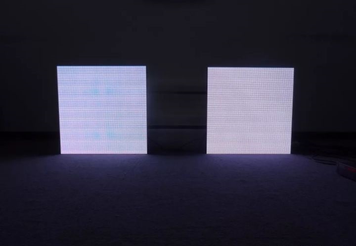 △左:共陽顯示屏,出現(xiàn)泛藍泛青的溫漂現(xiàn)象 右:共陰冷屏,整屏顏色一致