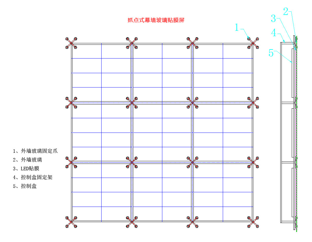 抓點(diǎn)式幕墻無框透明屏安裝總體圖:AOpLED顯示屏廠家|江蘇迷你光電有限公司