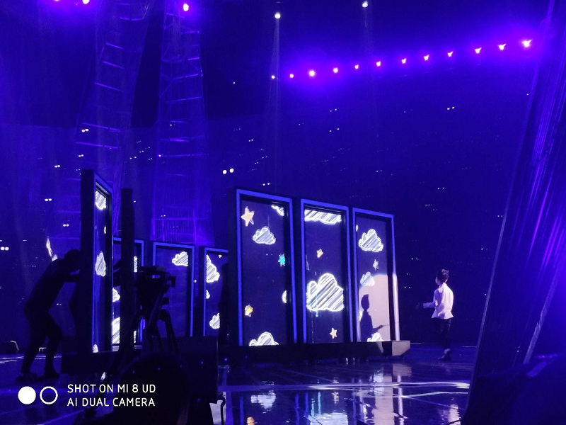 節(jié)目由12塊靈活移動LED透明屏組成,每塊LED透明屏設計前衛(wèi),獨家研發(fā),專利保護。顯示畫面色彩飽滿,性能超穩(wěn)定,散熱快,無噪音,在整個節(jié)目表演過程中穩(wěn)定運行,表現(xiàn)出色,結合現(xiàn)場燈光和溫度的表達上投入心力,呈現(xiàn)科技與藝術的完美融合。整個舞臺充滿科技神秘感,讓現(xiàn)場的每一位觀眾都能以不同的視角沉浸其中,為現(xiàn)場觀眾帶來了新鮮感,科技感的酷炫體驗!