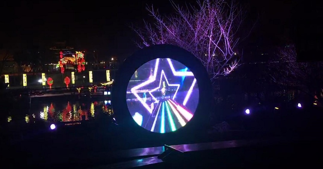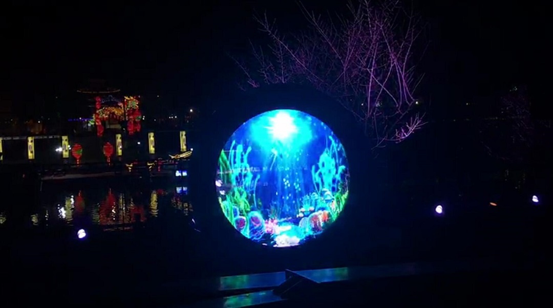 南京雨花臺公園戶外圓形透明屏完美點亮!